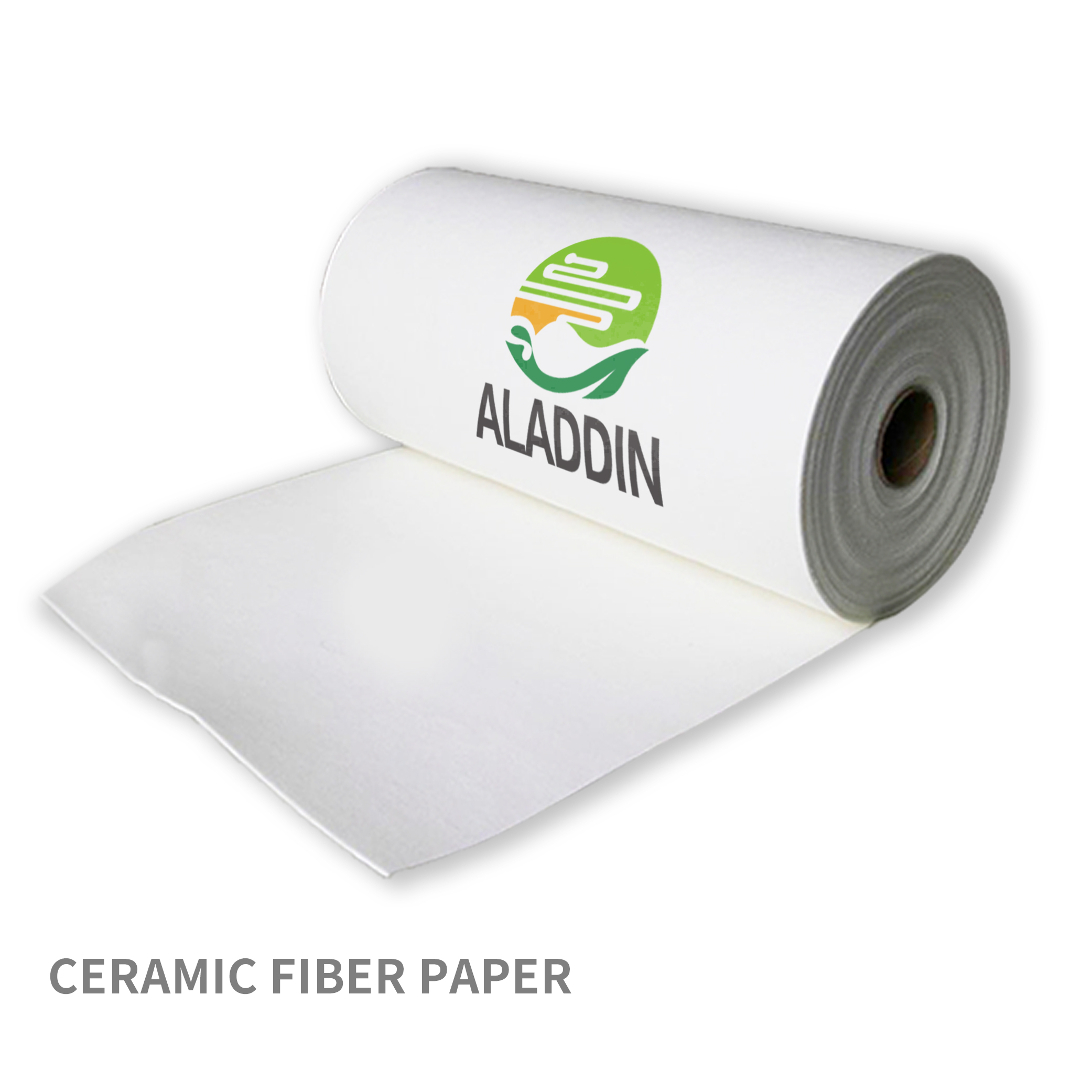 Aladdin ceramic fiber paper is made from refractory fibers through pulping, sheet forming, drying, edge cutting, and rolling. The product features uniform fiber distribution, precise dimensions, a clean white appearance, low balling content, good interlayer bonding strength, high tensile strength, easy to cut, and is convenient to use.