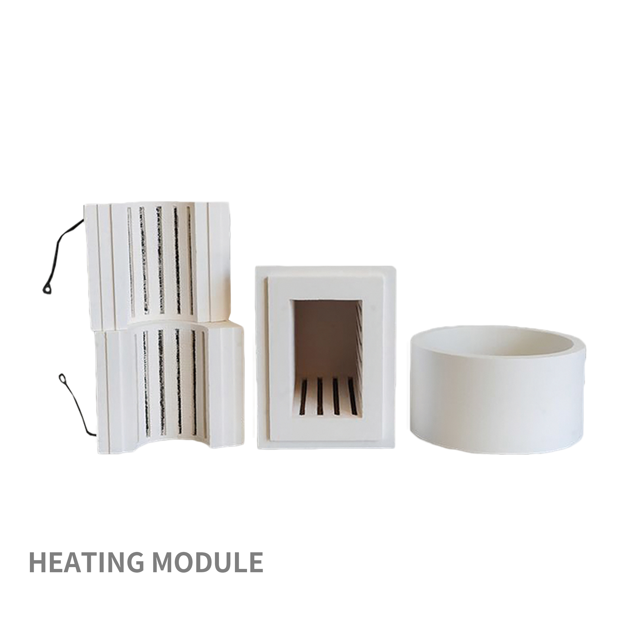 heating module uses a vacuum suction molding process to embed heating elements within fiber molded products, integrating heating and insulation into a single product. It has a maximum operating temperature of up to 1300°C and offers excellent heating effects and thermal stability. Design solutions can be provided according to different environmental requirements. The product is widely used in heating equipment such as laboratory electric furnaces, industrial furnaces, powder metallurgy, and oil pipelines.